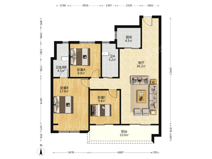 碧桂园珺悦府3室2厅2卫118.00㎡。